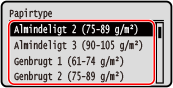 Hvis du ofte har brug for at ændre det papir, der skal ilægges, skal du indstille det til [Frit]; dette vil reducere antallet af nødvendige trin for at ændre indstillingen hver gang. Bemærk dog, at denne indstilling lader maskinen udskrive, selvom der er uoverensstemmelse mellem papirtypeindstillingen i printerdriveren og den papirtype, der rent faktisk er lagt i maskinen.