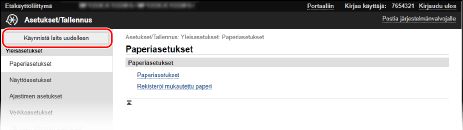 Jos muutat asetuksia käyttämällä joko ohjauspaneelia tai etäkäyttöliittymää, voit käynnistää laitteen uudelleen käyttämällä virtakytkintä tai etäkäyttöliittymää.