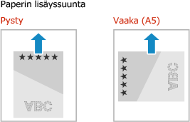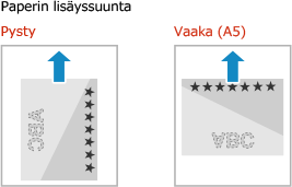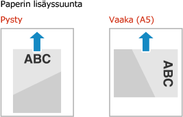 Oletusarvoisesti lisättävän paperin suunta ja tulostettava puoli vaihtelevan sen mukaan, tulostetaanko yhdelle vai molemmille puolille.
