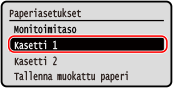 Valitse paperikasetti, jonka asetusta haluat muuttaa, ja paina