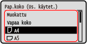 Valitse paperikasettiin lisätyn paperin koko ja paina