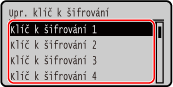 Vyberte položku [Vyberte klíč k šif.] a stiskněte tlačítko