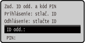 Keď je nastavená správa ID oddelenia, zobrazí sa nasledujúca prihlasovacia obrazovka. Zadajte ID oddelenia na prihlásenie. Ak je nastavený PIN, zadajte PIN.