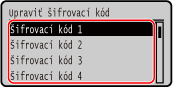 Vyberte položku [Upraviť šifrovací kód] a stlačte tlačidlo