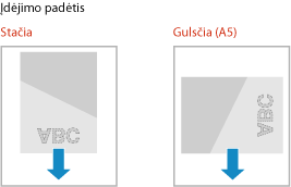 Įdėkite dokumentą logotipo puse, ant kurios pirmiausiai spausdinsite, į viršų.