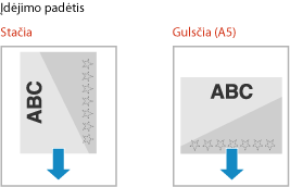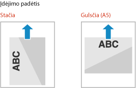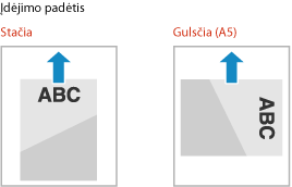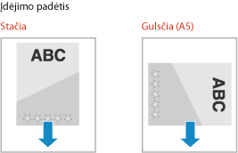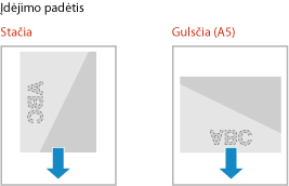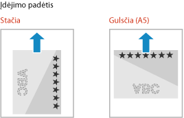 Pagal numatytuosius parametrus dedamo popieriaus padėtis ir spausdinimo pusė priklauso nuo to, ar norite spausdinti ant vienos ar abiejų pusių.