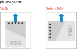 Įdėkite dokumentą logotipo puse, ant kurios spausdinsite, į viršų.