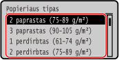 Pasirinkite popieriaus tipą ir spustelėkite
