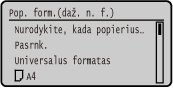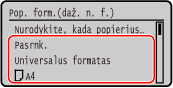 1 veiksmo ekrane galite pakeisti rodomą popieriaus formatą. Nenaudojamų popieriaus formatų paslėpimas