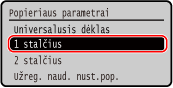 Pasirinkite popieriaus stalčių, kurio parametrą norėsite keisti, ir paspauskite