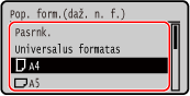 Jei dažnai reikia keisti įdedamo popieriaus formatą, nustatykite [Universalus]; taip sumažinsite kaskart keičiant parametrą atliekamų veiksmų skaičių. Tačiau atminkite, kad pagal šį parametrą aparatas spausdins, net jei spausdintuvo tvarkyklėje nustatytas popieriaus tipo parametras nesutampa su popieriaus, faktiškai įdėto į aparatą, tipu.