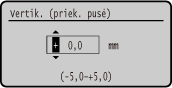 Nurodykite koregavimo kryptį naudodami „+“ ir „-“, tada nurodykite koregavimo plotį 0,1 mm padalomis.