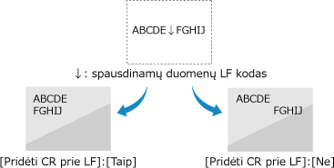 Jei pasirenkama [Ne], spausdinimo padėtis perkeliama į kitą eilutę tiesiog po gautu eilutės tiekimo (LF) kodu.