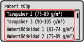 Valige paberisahtlisse laaditud paberi tüüp ja vajutage