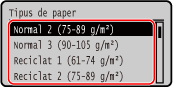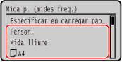 Podeu canviar la mida de paper que aparegui a la pantalla al Pas 1. Possibilitat d'amagar mides de paper que no s'utilitzen