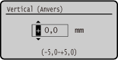 Especifiqueu la direcció d'ajust amb + o - i especifiqueu l'amplada d'ajust en unitats de 0,1 mm.