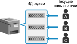 Назначайте идентификаторы отделов пользователям и группам с учетом того, в какой среде и в каких целях используется аппарат. Кроме того, установка PIN-кода для идентификатора отдела позволяет предотвратить несанкционированный доступ и вести более строгий контроль.