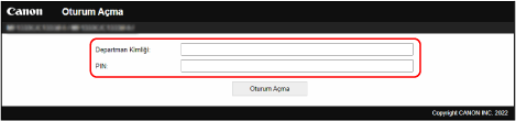 Departman Kimliği Yönetimi ayarlandıysa Departman Kimliği ile oturum açmanız gerekir. Oturum açtığınız mod, Sistem Yöneticisi Kimliği ayarlarına bağlı olarak değişiklik gösterir.