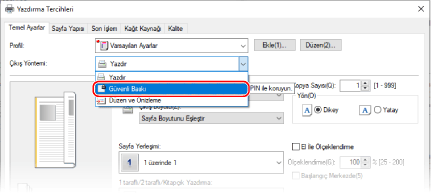 [Yazdırma tercihleri] ekranı yeniden görüntülenir.