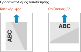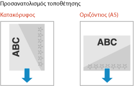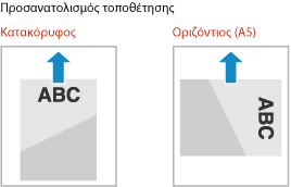 Από προεπιλογή, ο προσανατολισμός τοποθέτησης και η πλευρά στην οποία θα γίνει η εκτύπωση διαφέρουν, ανάλογα με το αν θα γίνει εκτύπωση στη μία ή και στις δύο όψεις.