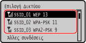 Αναζητήστε δρομολογητή ασύρματου LAN (σημείο πρόσβασης) στον οποίο θα συνδεθείτε και εισαγάγετε το κλειδί δικτύου.