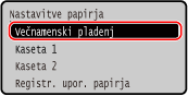 Če v večnamenskem pladnju vedno uporabljate enak papir, lahko registrirate velikost in vrsto papirja. To prepreči prikaz zaslona z nastavitvami papirja, vam pa ni treba konfigurirati nastavitev.