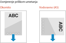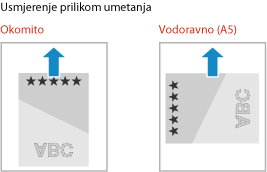 Pri umetanju papira s logotipom obratite pozornost na usmjerenje i na to koja je strana okrenuta prema gore.