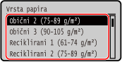 Odaberite vrstu papira i pritisnite