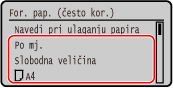 Prikazani format papira možete promijeniti na zaslonu u 1. koraku. Sakrivanje formata papira koji se ne upotrebljavaju