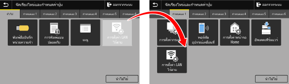 คุณสามารถจัดเรียงปุ่มบนหน้าจอ [Home] และย้ายปุ่มไปยังแท็บอื่นๆ