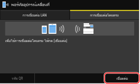 1 | บนแท็บ [การเชื่อมต่อโดยตรง] ให้กด [รหัส QR] คิวอาร์โค้ดจะปรากฏขึ้นมา |