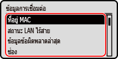 การดูที่อยู่ MAC และข้อมูลการเชื่อมต่อของ LAN แบบไร้สาย