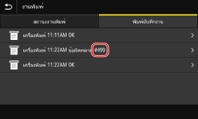 หากไม่สามารถพิมพ์ ไม่สามารถรับ I-Fax หรือมีข้อผิดพลาดอื่นเกิดขึ้น รหัสข้อผิดพลาด (หมายเลขสามหลักที่ขึ้นต้นด้วย "#") จะแสดงในรายการบันทึกงาน