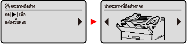![]() ถาดอเนกประสงค์และถาดใส่กระดาษ ถาดรองรับงานพิมพ์ในเครื่อง ตัวช่วยลำเลียงกระดาษ 2 ด้าน และด้านหลัง |
