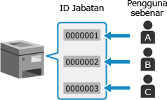 Memberikan ID Jabatan kepada pengguna dan kumpulan mengikut persekitaran dan tujuan penggunaan. Selain itu, menetapkan PIN untuk ID Jabatan dapat mencegah akses yang tidak dibenarkan dan membolehkan pengurusan yang lebih ketat.
