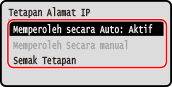 1 | Tekan [Memperoleh secara Auto]. Skrin [Tetapn Alamat IP (Memperoleh Scara Auto)] dipaparkan. |