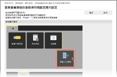 您可以從電腦使用遠端使用者介面重新排列 [首頁] 畫面按鈕的順序和重新命名索引標籤。