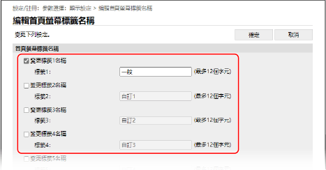 顯示 [編輯首頁螢幕標籤名稱] 畫面。
