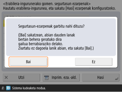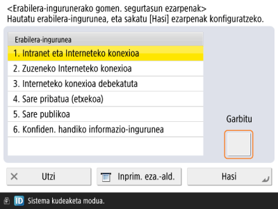 <Erabilera-ingurunerako gomen. segurtasun ezarpenak> pantaila agertuko da.