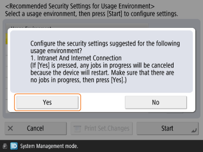If <Recommended Security Settings> is not available, you can manually change the security settings. For details on changing the security settings manually, see the following. Effect and Impact of Security Settings <Recommended Security Settings> is not available if any security policy settings are set. |