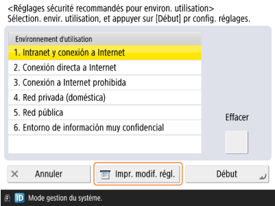 L’écran <Recommended Security Set. for Usage Environment> s’affiche.