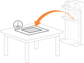 Effectuez la mesure à l'endroit où le papier et la plaque métallique ou le tapis conducteur mis à la terre se touchent étroitement.