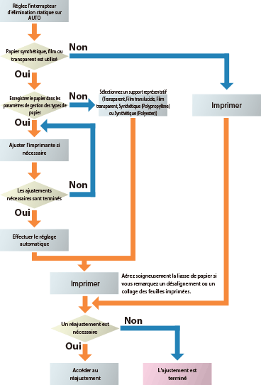 Imprimez en utilisant le papier pour lequel les paramètres d'élimination statique ont été ajustés.