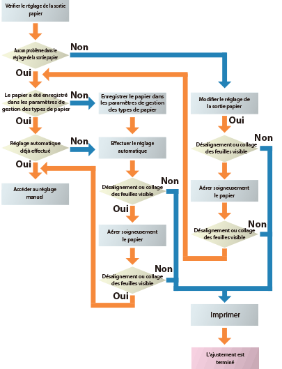 Vérifiez les paramètres de sortie papier pour l'impression après avoir effectué le réglage initial.
