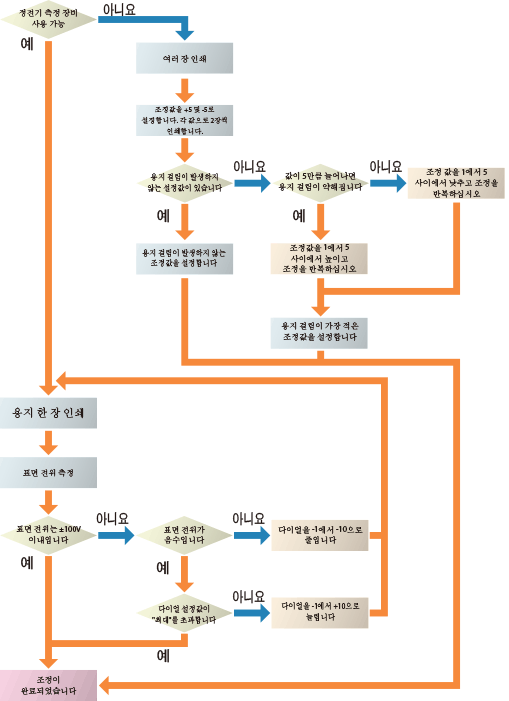 용지 걸림이 발생하지 않는 설정값으로 조정을 완료합니다.