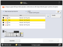 També apareix una pantalla en què s'indica que carregueu paper quan el dipòsit seleccionat no està totalment introduït a l'equip. Per tant, assegureu-vos que estigui col·locat correctament. No carregueu al dipòsit de paper els tipus de paper següents. Si ho feu, es poden produir encallaments. Paper molt corbat o arrugat Paper palla de baix gramatge Paper gruixut (més de 500 g/m2) Paper fi (menys de 60 g/m2) Paper on s'ha imprès amb una impressora de transferència tèrmica El revers d'un paper on s'ha imprès amb una impressora de transferència tèrmica Si el gramatge del paper dipositat a l'origen del paper no és suficient, l'ús de paper estucat amb un gramatge de 90 g/m2 o menys o de paper no estucat amb un gramatge de 60g/m2 pot arrugar-lo o doblegar les cantonades. Eviteu utilitzar el paper quan es mostri per la quantitat de paper restant. Si el paper s'arruga en alimentar-lo en orientació vertical (retrat), alimenteu-lo en orientació horitzontal (paisatge). Assegureu-vos que separeu bé els fulls abans de col·locar-los. Els tipus de paper fi, reciclat, preperforat, gruixut, transparències, pel·lícula transparent, pel·lícula translúcida i separadors s'han de separar amb especial atenció abans de carregar-los. Si s'esgota el paper i la impressió s'atura quan s'està imprimint amb l'opció de grapar, no traieu els fulls impresos pendents de ser grapats. (Les operacions d'impressió i de grapat es reprenen un cop eliminat l'encallament de paper.) No aixequeu l'elevador que hi ha als dipòsits de paper mentre l'equip estigui engegat, ja que es pot produir un error de funcionament o l'equip es pot fer malbé. Si heu d'apujar l'elevador, per exemple, si cauen objectes, apagueu l'alimentació principal amb els dipòsits de paper oberts. Per conèixer les instruccions per apagar l'equip, vegeu "Shutting Down the Machine". ![]() |