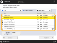 Opcions de gestió de tipus de paperMentre deseu el tipus de paper personalitzat per a un origen de paper, les opcions de tipus de paper estan protegides i no podeu canviar la informació detallada per al tipus de paper personalitzat ni eliminar el tipus de paper personalitzat a <Opcions de gestió de tipus de paper> a <Preferències> (Configuració).