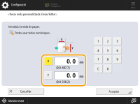 Especifiqueu la longitud del costat <X> i del costat <Y>. Premeu <X> o <Y> per introduir la longitud de cada costat utilitzant les tecles numèriques.