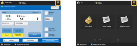 La pantalla <Monitor estat> apareix quan s'inicien o es restauren les opcions predeterminades. Si voleu canviar la pantalla que apareix en iniciar-les o restaurar-les, consulteu <Pantalla d'inici/restauració predeterminada>. |