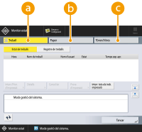(Monitor estat), apareix la pantalla <Monitor estat>. Podeu comprovar no només l'estat de funcionament, sinó també la informació detallada del paper a l'origen del paper i la informació de la unitat principal, com ara la quantitat de tòner restant.